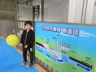 首都圏外郭放水路という洪水対策の防災施設を見学です。ここは「龍Q館」という見学施設になります。