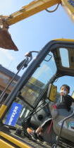 機械の体験もしたよ、照明車を操縦したり、バックホウにも試乗