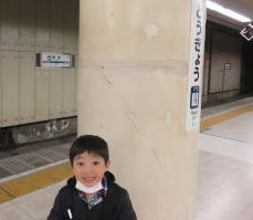 フーッ 地下からの階段がきつかった・・・ 僕は平気だけどお父さんがヘタバッテいる