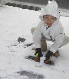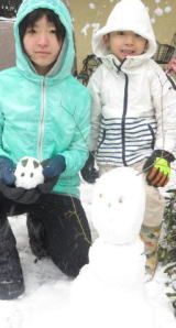 依亜ちゃん 恒例の小さな雪だるま