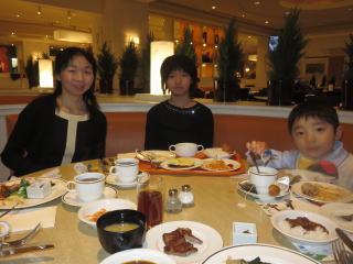 ディナービュッフェで みんな食べすぎですが、バースデーケーキはしっかりいただきました!