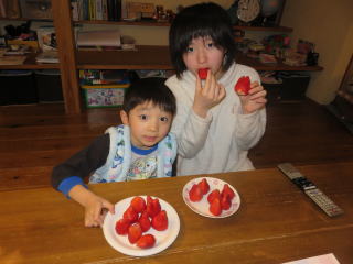 ママババから 大きくて甘い イチゴをいただきました