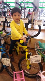 自転車に乗れるようになったので、身長に合った新しい自転車を買ってもらえることになったんだ