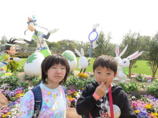 イースターのイベント中 ” うさたま 大脱走 ” ということで 逃げ出した ウサギ?タマゴ?をランド内で探して捕まえます!