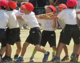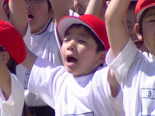 応援合戦 皆で力を合わせて 上級生に負けないくらい 大きな声で