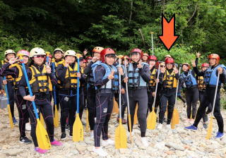 しっかり講習 (落ちた時の泳ぎ方?) を受けて ヘルメットにライフジャケットを身にまとい イザッ