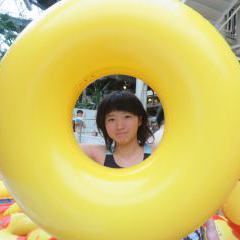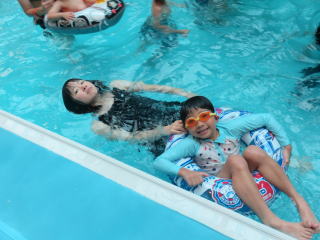 依亜ちゃんに浮き輪を引っ張ってもらって、緑之助は楽々