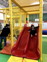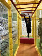 「これがアスレチックだー」と叫び、駆け上る子供。勢いよく滑り降りる。「もう1度ぉー!」と勢いづく子供。