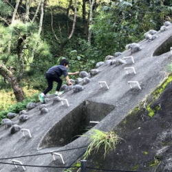 じゃあ、どうしようかな?と帰路につき始めると、斜面を利用したコンクリート山登り。登ったら滑り台で降りる。