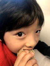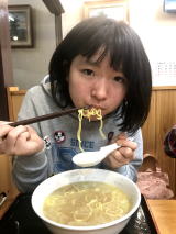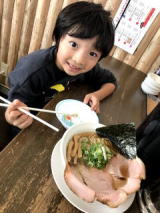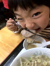 お夕飯は外食。お父さんがお気に入りのラーメン屋ですが、子供には濃すぎたかな?