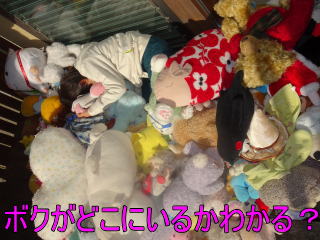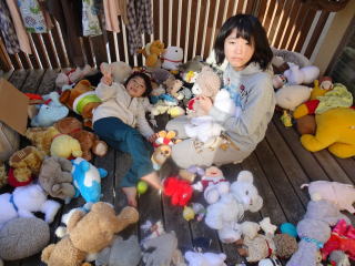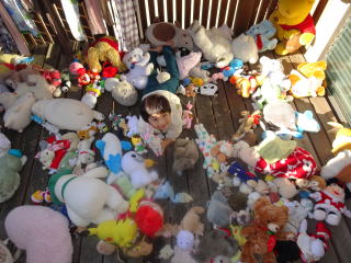 大量のぬいぐるみ達を 日光浴に連れ出しました