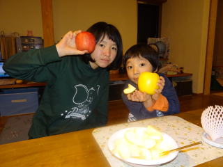 僕も リンゴ 大好きなんだけどなぁ 兄弟仲よく分け合おうよ