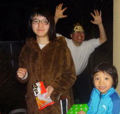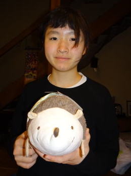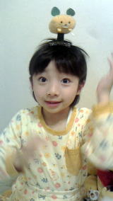 ちょんまげ頭に ヌイグルミ(みきゃん)乗っけて帰ってきたよ〜