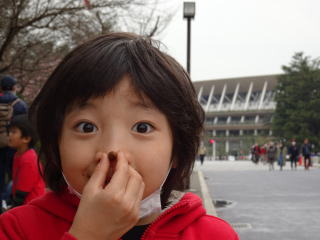 お父さんの歯科医院に付き合った後、電車に乗り東京の信濃町駅で下車