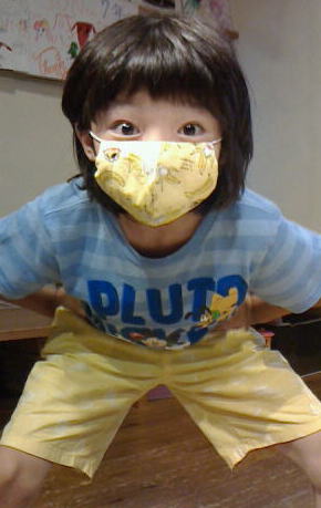 さっそく ”いあのマスク” を気に入っている緑之助が装着