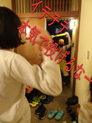 今度は玄関から 鬼が入ってきたぞ 思いっ切りぶつけてやれ