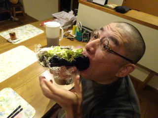 お父さんの サラダ巻き 太すぎ食べきれないよ