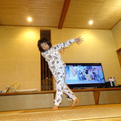 夜は お母さんのお誕生日会の続き 緑之助の出し物はダンス「BTSのDynamite」を披露