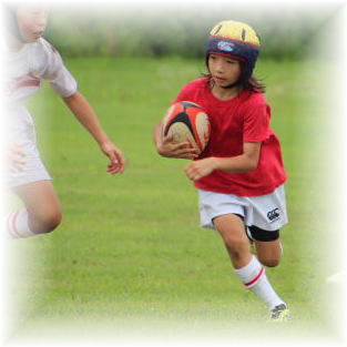 日曜日は ラグビースクール 青い空 緑の芝生 タックル!