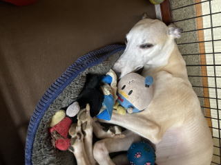 お友達(ぬいぐるみ)達を抱え込んで お昼寝 熟睡中