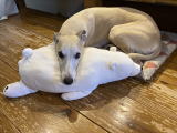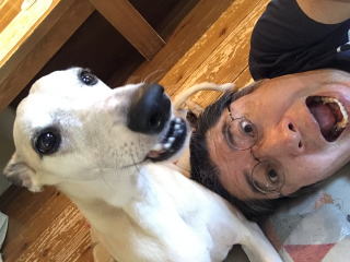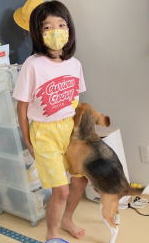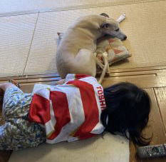 従姉弟の家に寄ってみました。なぜか緑之助はワンちゃん気に入られています。