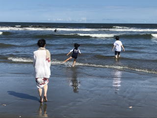 近くに海岸へ遊びに行ってみることに。裸足で歩くと砂が熱い