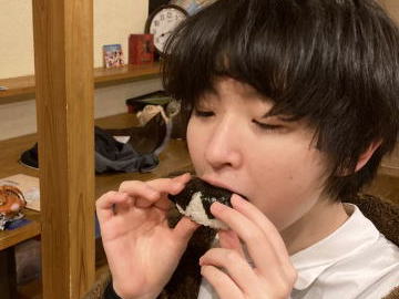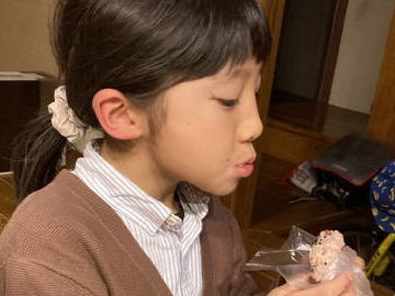 あら こちらのお姉さんも おにぎりを無言で食べる