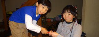依亜と緑之助から プレゼントを手渡し おめでとう!