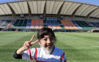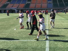 ラグビースクールは 大きなスタジアムでの練習をすることができました