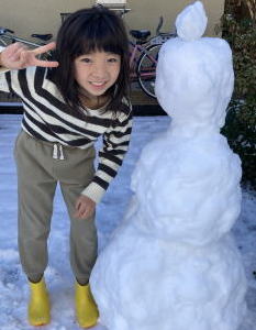 近所のお友達が早朝から こっそりと雪だるまを作ってくれました びっくり ありがとー