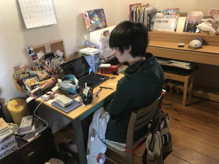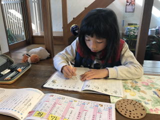 自宅で学習 先生が課題プリントを持ってきてくれるよ