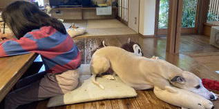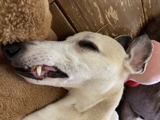 歯をむき出しで 気持ちよさそうに寝ているサン君
