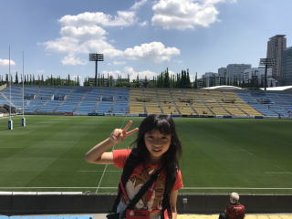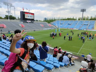 初めて、おかあちゃまが秩父宮ラグビー場に来て、一緒に応援できる