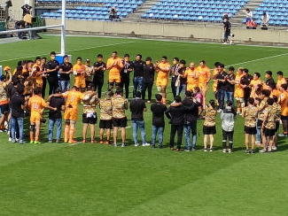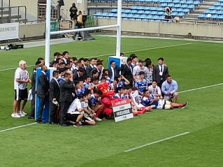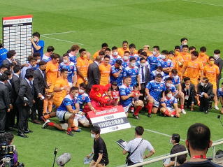 ノーサイド 両チーム混ざって 今シーズンの健闘を称え合いました