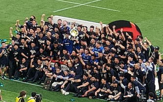 首位争いの さいたまパナソニック・ワイルドナイツ (青ジャージ)