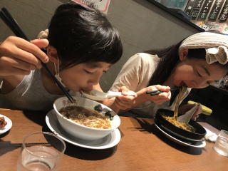 運動した後のランチは 依亜ちゃんたちと待ち合わせして ラーメン屋さんへ