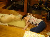 夜中 お母さんとサン君は 一緒に床に転がって眠っています