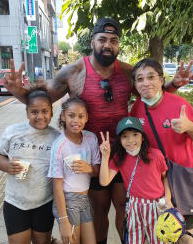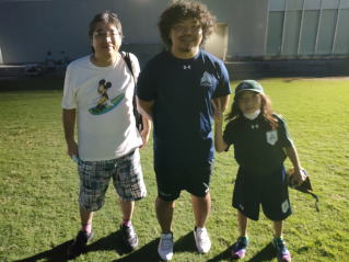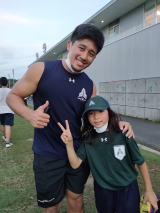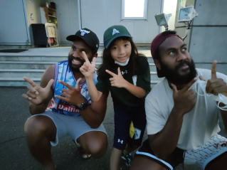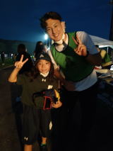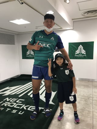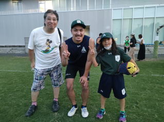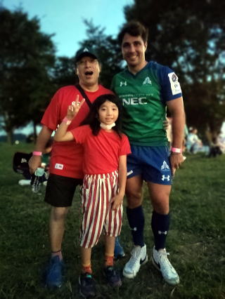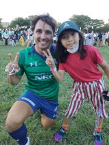 ご家族でお楽しみのところ、お声をかけると やはりナイヤラボロ選手。イエーイ
