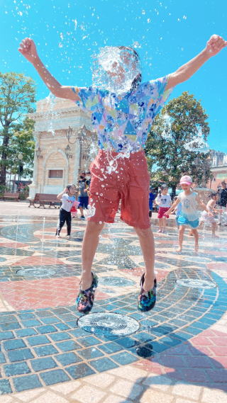 緑之助 ちびっ子に混ざって 噴水でビショ濡れ