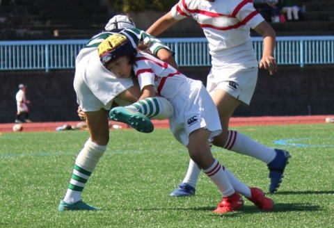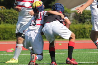 あきらめず最後まで相手を追いかけトライを防ぐ