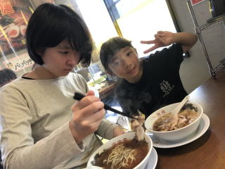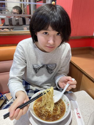 依亜ちゃんから ご褒美(?)にラーメンのチャーシューをもらったよ