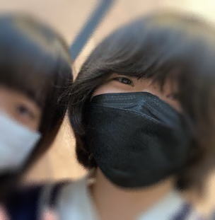 依亜 学校のお友達と。。。 前髪とマスクで 目だけしか写ってませんな