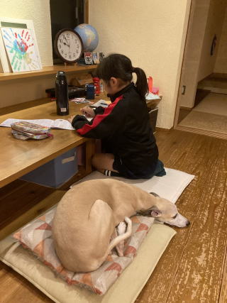 水曜日、ラグビー練習で21時過ぎに帰宅後、宿題に取り組む