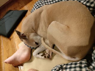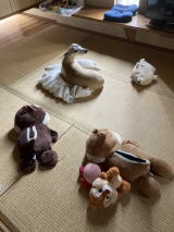 毛布、座布団、マイルーム、お父さんのお膝、ロクと添い寝、、、移動が忙しいサン君