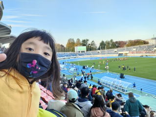今回は選手エスコートに当選しており、柳田選手と手をつないで一緒に入場しました
