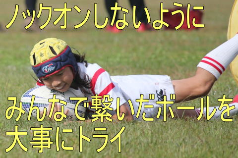 タックルされて倒されながら ボールを味方につなぎます これがオフロードパス 練習の成果がでていますね