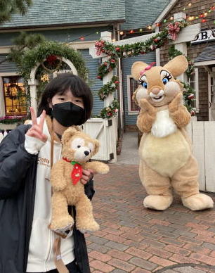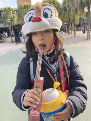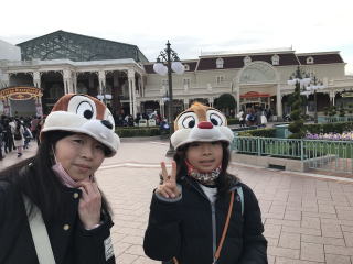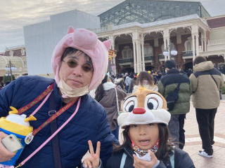 昨日 ディズニーランドでお友達になった ウサギの被り物をしたデール