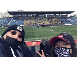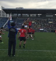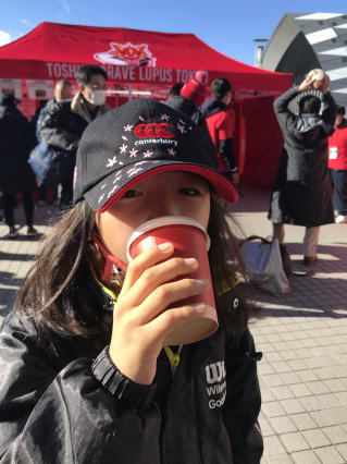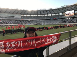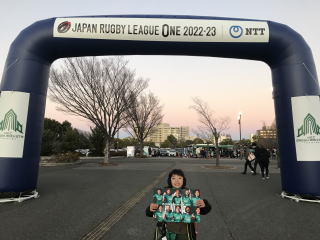 ラグビースクールの練習が終わるや、急いでリーグワンの試合会場へ