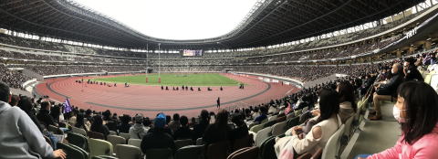 こんな間近のピッチレベルで見られる秩父宮のバックスタンドは最高