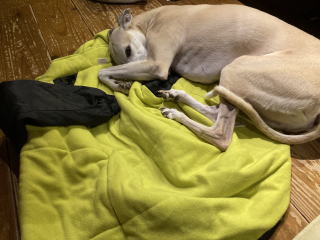 学校から帰るなり床に脱ぎ捨てたベンチコートを サン君はすかさず毛布代わりにドシンと座り込みます